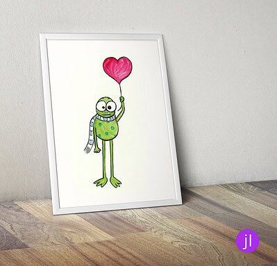 Das Motiv wurde von mir mit Liebe handgezeichnet, mit Aquarellfarbe koloriert, dann digitalisiert und anschließend gedruckt.
