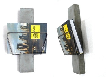 Puristischer Zeitungshalter aus Beton und Baustahl. Ein nicht nur nützliches sondern auch sehr dekoratives Utensil für zu Hause oder fürs Büro.