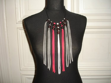 Aus geknüpften Jerseyfäden in den Farben grau,pink und weiß.