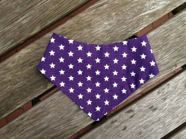 Süßes Halstuch aus lila Baumwollstoff mit weißen Sternen. Mit Snap-Druckknopf. Für Kinder bis ca. 2 Jahre