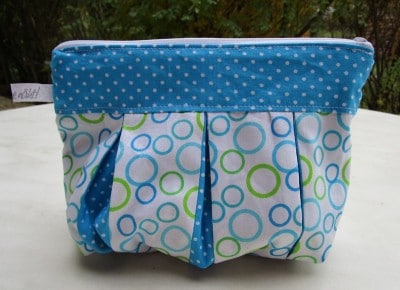 Zwei verschiedene Stoffe ergeben einen tollen Mix: Kringel und Punkte, türkis, grün, weiß.
