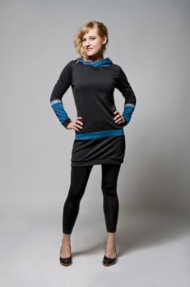 Handgenähtes Kapuzenkleid aus kuschligen schwarzen Sweatstoff (innen flauschig).