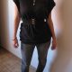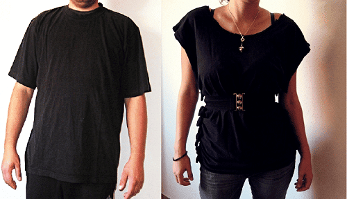 Ich habe das Shirt links und rechts bis zu den Ärmeln aufgeschnitten. Danach habe ich Franzeln geschnitten. Immer im 5cm Abstand und 8cm lang.