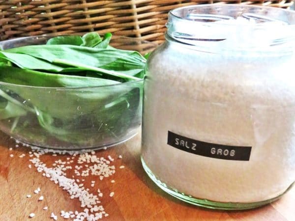Im Prinzip wird dazu Bärlauch und Salz zerkleinert und vermixt. Und zwar im Verhältnis 200 g Salz auf 50 g Bärlauch
