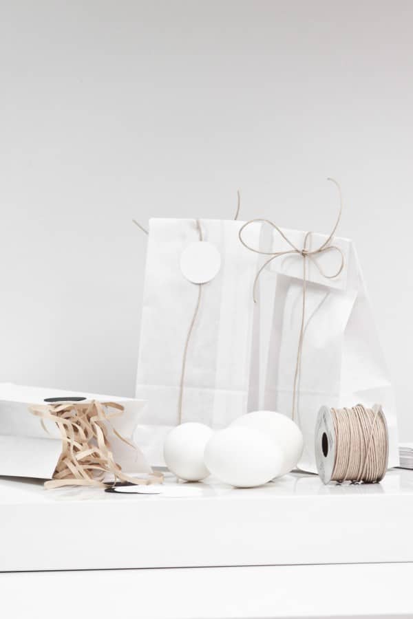 Ostern steht vor der Tür. Natürlich werde ich auch dieses Jahr wieder meine „Osternester“ im Garten verstecken. Eine einfache Idee besteht daraus, Papiertüten zu packen. Dafür habe ich weiße Tüten mit groben Ostergras gefüllt, eine Paketschnur benutze ich zum Verschließen. Damit die Schnur nicht verrutscht, habe ich sie mit einem Pappkreis an der Tütenrückseite fixiert. Doppelseitiges Klebeband eignet sich sehr gut, da es sofort klebt. Jetzt fehlt vielleicht noch ein Geschenkanhänger, ansonsten wäre ich mit meinen Osterpäckchen fertig.