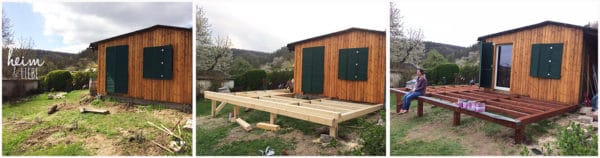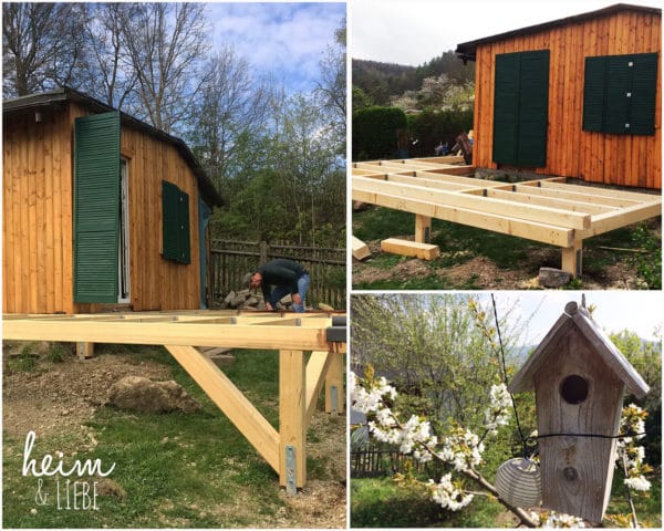 Nachdem unser Gartenhäuschen bereits eine neue Verkleidung, Fensterläden und eine Tür erhalten hat, wollen wir unbedingt in diesem Jahr eine Terrasse bauen. Da unser Garten ein Hanggrundstück ist, ist es uns auch besonders wichtig, eine schöne große Terrasse zu haben, die uns Platz für Tisch und Stühle bietet. Die Vorstellung auf der Terrasse den Grill anzuwerfen und mit Freunden zu verweilen oder an einem lauen Sommerabend mit einem guten Buch im Liegestuhl zu sitzen, macht mich jetzt schon ganz glücklich….Also soll es doch auch bitte ganz schnell gehen und am besten noch vor Beginn des Sommers sollte die Terrasse fertig sein. Nach einigen Überlegungen, youtubevideos, Internetanleitungen und Befragungen unserer bekannten Hobbyhandwerker waren wir verzeifelt…. lest auf meinem Blog wie die Terase un doch gestalt annimmt