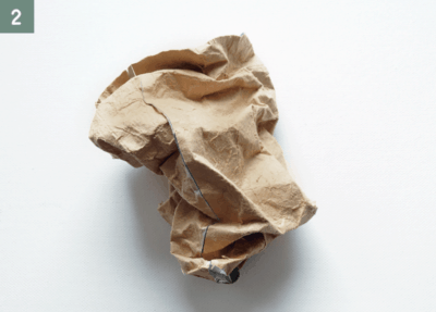 Dann das Papier ordentlich knautschen. Auch das geht am besten, wenn die Packung ein wenig in Wasser eingeweicht wurde.