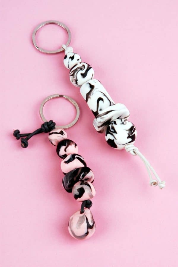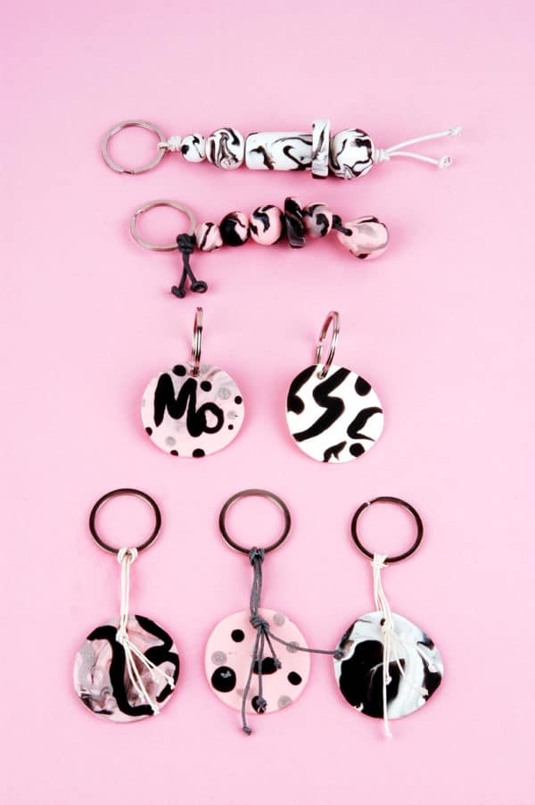 Gemusterte Schlüsselanhänger aus Kaltporzellan (Modelliermasse ohne Backen)