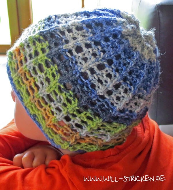 Strickanleitung Kindermütze für Frühling und Sommer, leichtes Ajourmuster zum Nachstricken. Auch für Loop super geeignet.