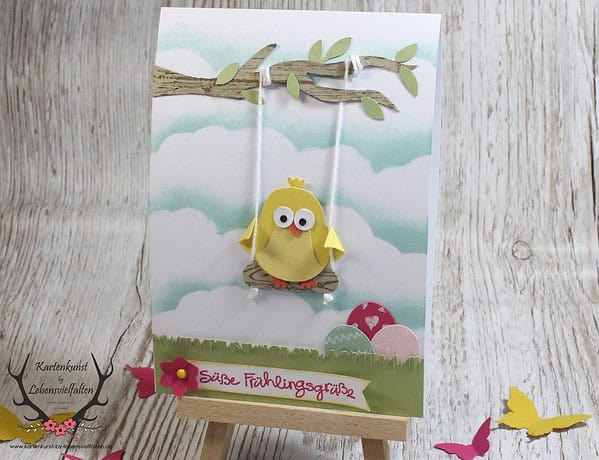 Uns so ist meine Karte mit einem Küken auf der Schaukel entstanden. Ich hoffe, dass sie euch gefällt :-)