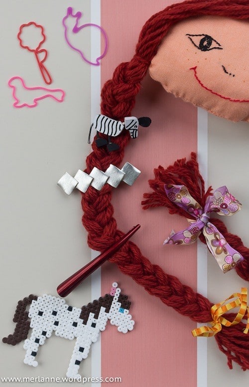 Wer mag sie nicht, die freche Pippi mit den abstehenden roten Zöpfen und den vielen Sommersprossen? Ihre Zöpfe eignen sich wunderbar als Haarspangenhalter. Eine Anleitung findet Ihr hier:
