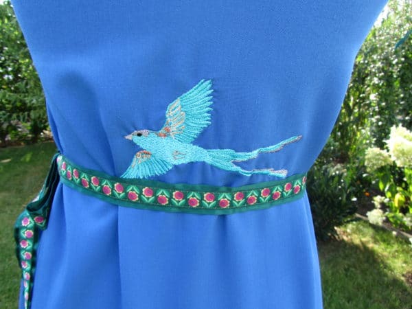 Der Taillengürtel besteht aus einem Satinband auf den ich ein Blumenband genäht habe.