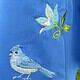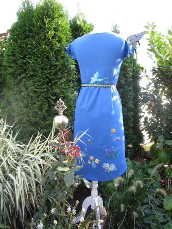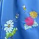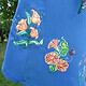 Habe einen sehr schönen blauen Stoff gefunden und eine kleine Blumenwiese darauf gestickt.