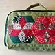 Nachdem ich vor zwei Wochen auf der Leipziger Buchmesse ein wunderbares Buch über die englische Papiertechnik beim Patchwork entdeckt habe, musste ich die Technik auch gleich auf den Koffer anwenden. So entstand die Verzierung auf der Vorderseite. Ansonsten besteht das Köfferchen aus robusten Baumwollstoff außen in grün, und dünnerem Baumwollstoff innen in weiß. Dazu habe ich einen etwas dunkleren ebenfalls grünen Reißverschluss verwendet.