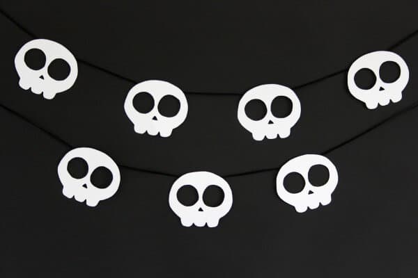 Ihr braucht noch eine schlnelle Deko für Halloween? Wie wäre es mit einer Totenkopf-Girlande?