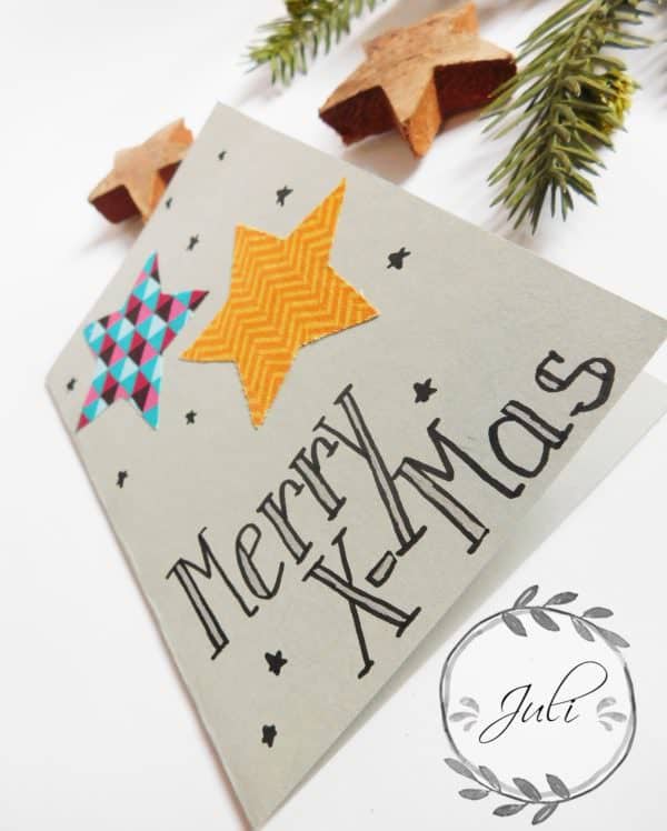 Weihnachtskarte mit Sternen aus Stoff