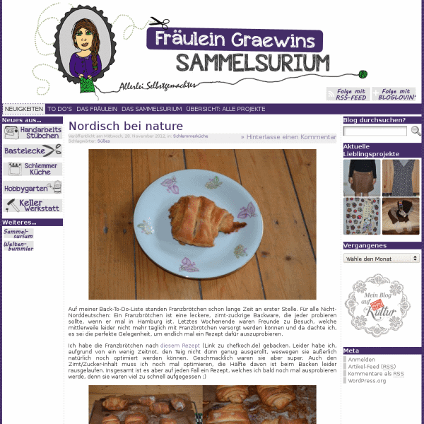 Willkommen auf Frl. Graewins Sammelsurium. Ich nähe, stricke, backe, bastle und gärtnere gern und teile Allerlei Selbstgemachtes aus diesen Bereichen auf meinem Blog. Ich freue mich auf euren Besuch.