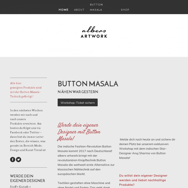 Auf meiner Seite findest du alles zu der innovativen Button Masala-Technik, die erste richtige Alternative zum Nähen. Video-Einblicke in die Workshops, DIY- Videotutorials und Blogeinträge mit Anleitungen schaffen dabei den perfekten Rahmen. In meinem Shop erhältst du zudem alle Materialen, um direkt mit der Technik loslegen zu können.
