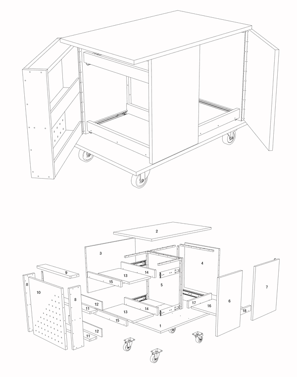 Und hier kannst du die Explosionszeichnug und die Zuschnittliste als PDF downloaden.