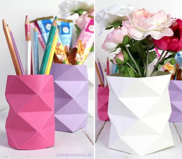 4. Die Origami-Vasen aus Tonpapier von lovedecorations sehen nicht nur toll aus, sie sind auch ziemlich schnell gemacht.