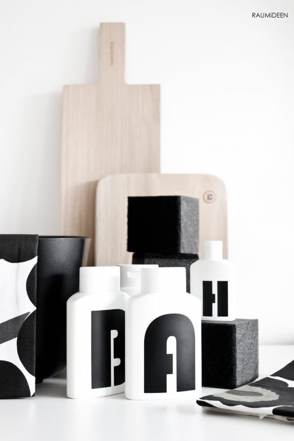 10. Raumideen hat simple Fläschchen mit Buchstaben aus schwarzer Klebefolie aufgepeppt.