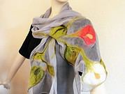 Dieser wunderschöne Schal aus reiner Chiffonseide wurde mit 100%iger australischer Merinowolle in Nunotechnik verfilzt. Diese Handarbeit ist ein langer Prozess, bei dem die Wollfasern durch die Seide greifen. Der Schal wird dadurch luftig leicht und ist angenehm zu tragen. Australische Merinowolle trägt sich angenehm und kratzt nicht.