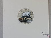 Der Handdruck habe ich auf Büttenpapier gedruckt und mit Aquarellfarben und silberner Acrylfarbe koloriert. Der Druck kommt in einem Passepartout zu Dir geflogen, 18 x 13 cm.