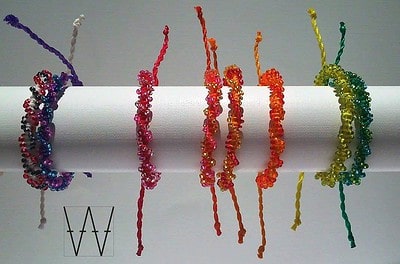 handgefertigt aus Recyclingmaterial und bunten Rocailles, mit flexiblem Makrameeverschluß