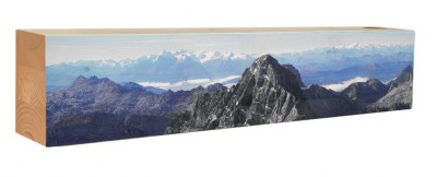 Das eindrucksvolle Bergpanorama vom Watzmann ist direkt auf Holz gedruckt. Das Foto ist an einem klaren Herbsttag von der höchsten Stelle des Watzmanns aufgenommen. Es lässt sich sehr einfach an die Wand hängen, denn auf der Rückseite ist ein Loch gebohrt und Dübel und Schraube gibt es dazu.