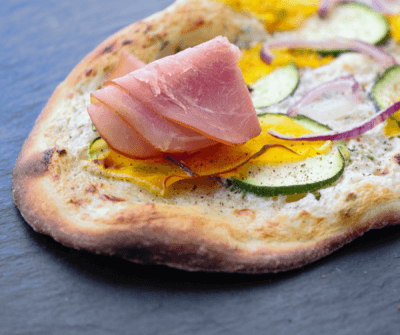 Flammkuchen mit Hokkaido, Zucchini und Schinken von Sandra Wirtz