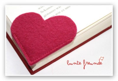 3. Zum Aufwärmen eine kleine Geschenkidee, für sich selbst oder andere Filz-Freunde und Bücherwürmer. Mit bunte freunde ist ratzfatz ein Lesezeichen genäht.