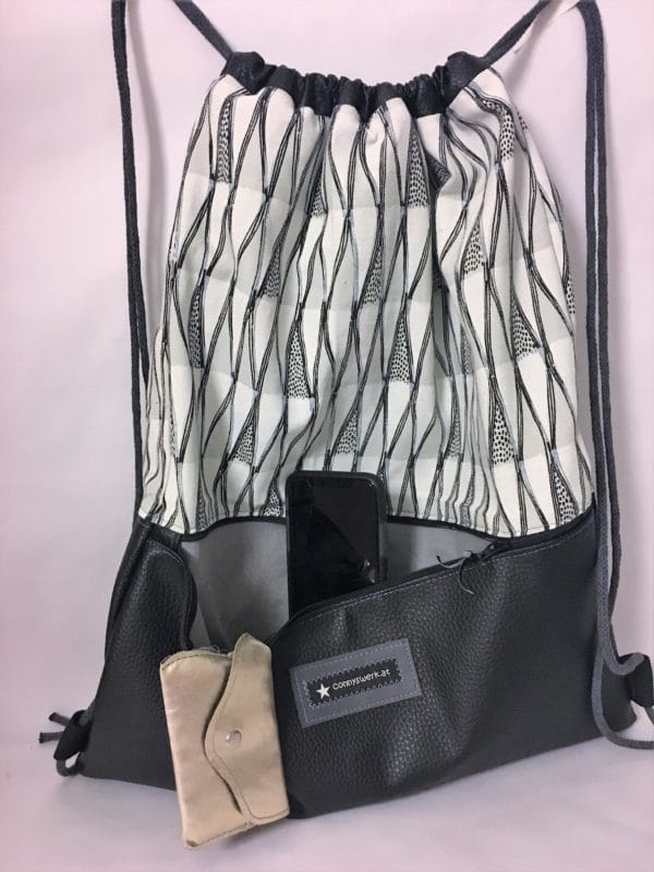 Wiedermal einen Turnbeutel für Erwachsene genäht – wobei das mit „Turnen“ heutzutage nicht mehr viel zu tun hat ;-). Ich habe dafür einen festen Baumwollstoff und ein Kunstleder verwendet. Wie das gute Stück genäht wird zeigt euch Josie hier unten: (ich habe vorne noch ein Reißverschlussfach eingearbeitet… muss aber nicht sein).