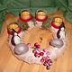 Den Strohkranz mit dem Juteband umwickeln. Darauf die Kerzenhalter anbringen und mit gefilzten Pilzen und genähten Zwergen dekorieren. Mit dieversem Dekomaterial ergänzen. Fertig.