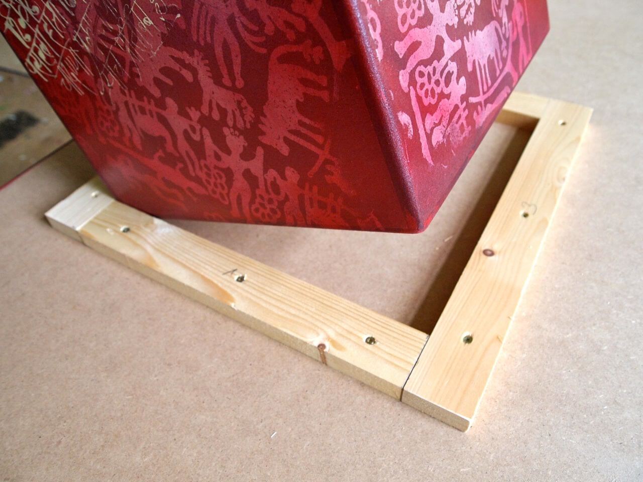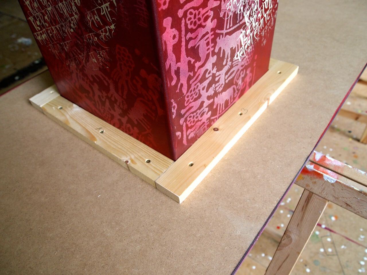 In diesen Fall mache ich einfach nur einen Rand aus Leisten darum herum, damit die Säule einrasten kann und somit stabilisiert ist.
