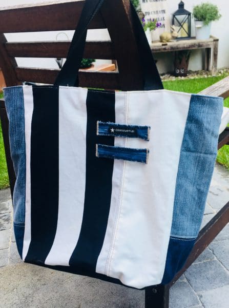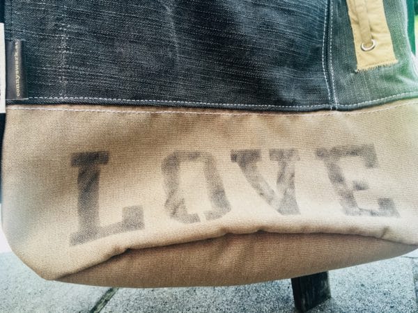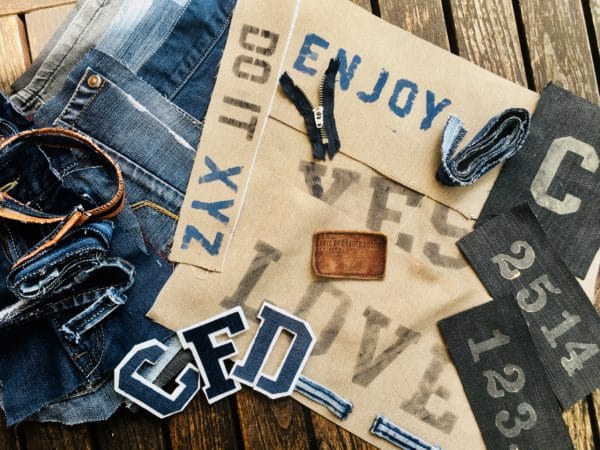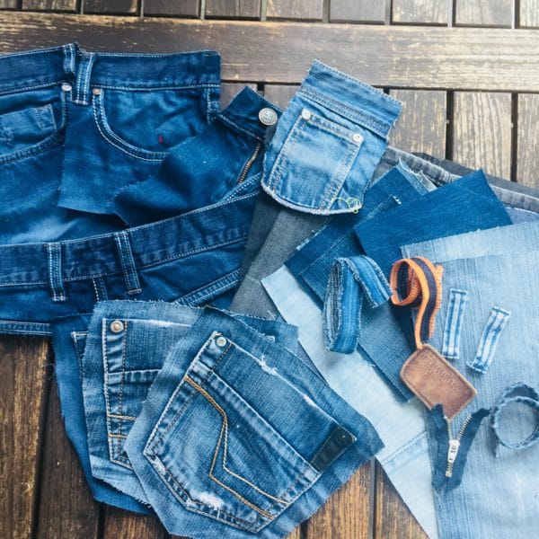 In meinem kleinen Stofflager warteten seit vielen Wochen ALTE Jeans und Taschen auf ihre Zertrennung, Auflösung, Zerschnippelung… was auch immer. Jetzt habe ich es endlich geschafft. Aber nicht nur das, ich habe auch Stoffe bedruckt.