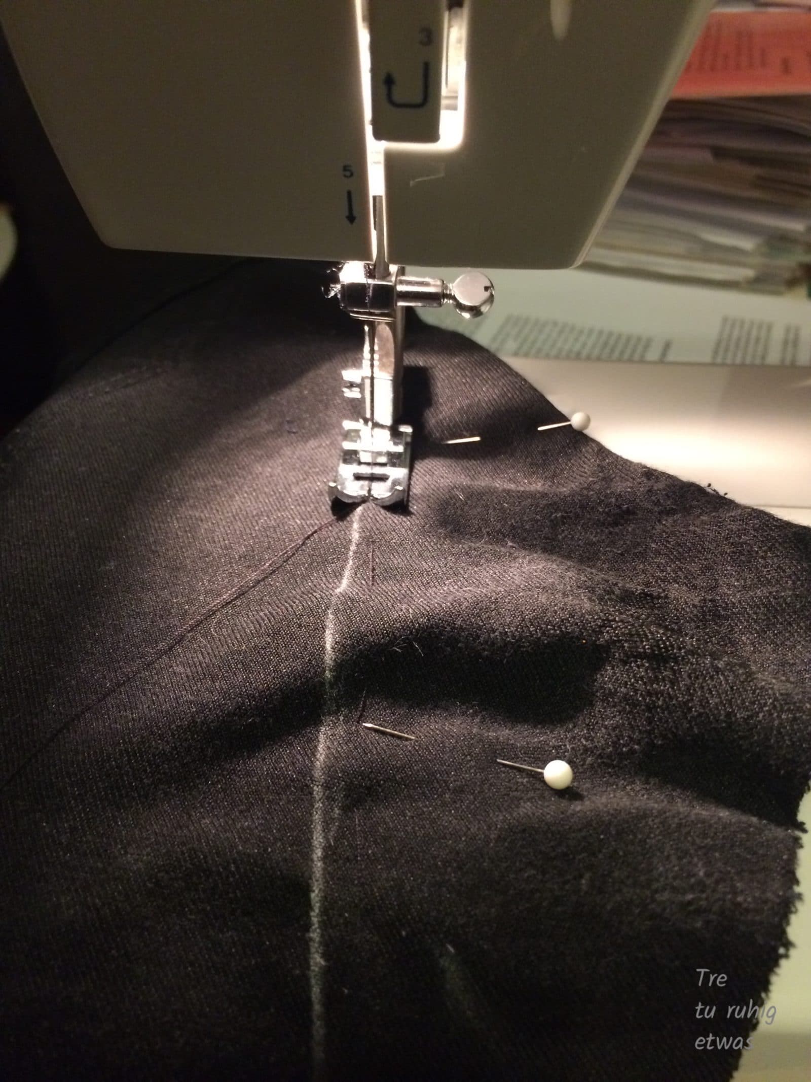 Wenn er passt, überflüssigen Stoff abschneiden ggf. mit Zickzack Stich vernähen.