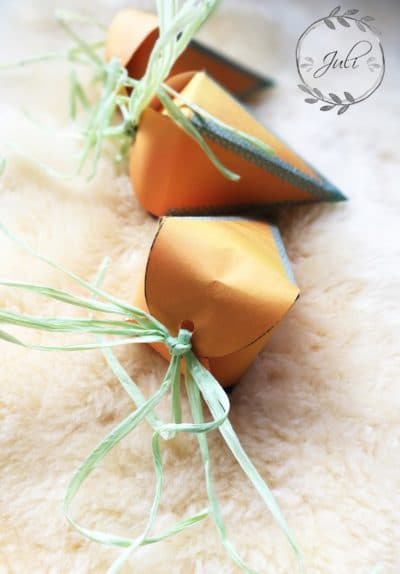 Schnelle Osterbastelei: Geschenktüten in Möhrenform Juli in Basteln, Basteln für Ostern, Heimwerken, Ostern, Papier, Bastelideen für Ostern hot merken