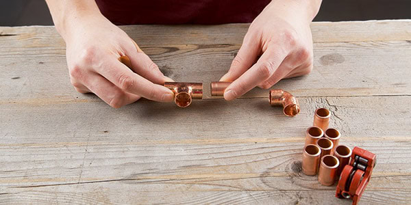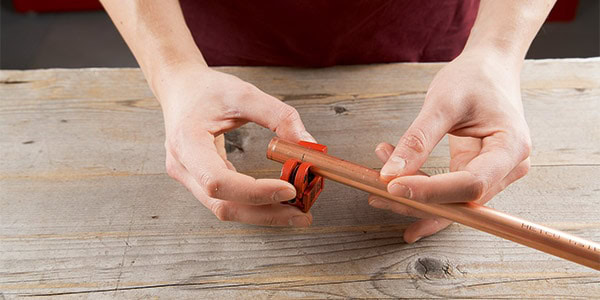 Maße für Verbindungsstücke und Zwischenrohre auf Kupferrohrmeter übertragen. Alle Teile mit dem Rohrschneider zuschneiden.