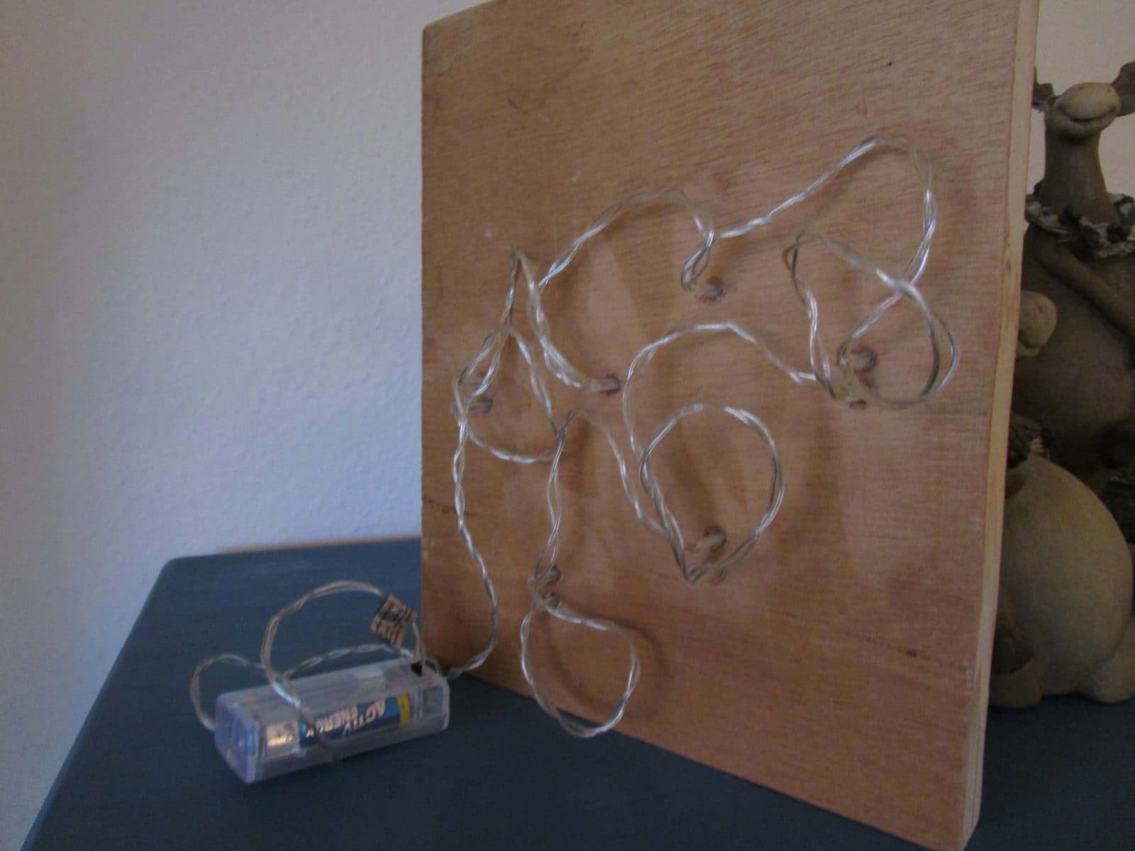 - Ihr könnt diese Deko auch als Bild aufhängen und evtl. eine Lichterkette mit Stromanschluss einarbeiten.
