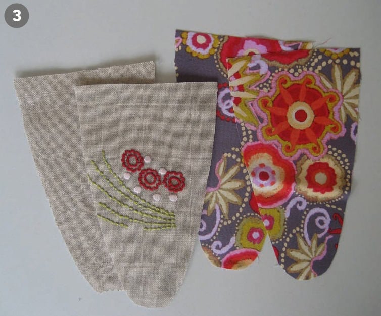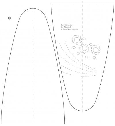 Das Volumenvlies auf den Zählstoff bügeln. Mit dem entsprechenden Schnittmuster aus jedem Stoff 2 Teile zuschneiden.