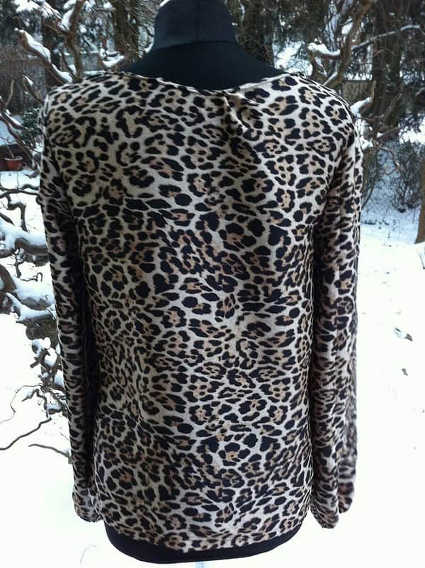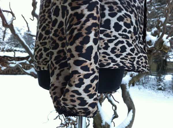 mein must-have. eine leoparden bluse mit breiter faltenfront. die ärmelsäume habe ich mit elastikband eingefasst.