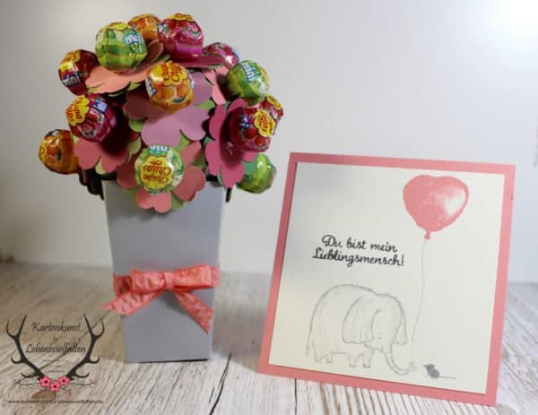 heute habe ich einen Chupa Chups Blumenstrauß /Baum mit passender kleinen Karte für Lieblingsmenschen, für euch.