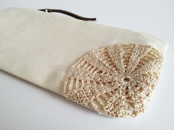 Ich hab ein kleines Spitzendeckchen für eine moderne Clutch genutzt.