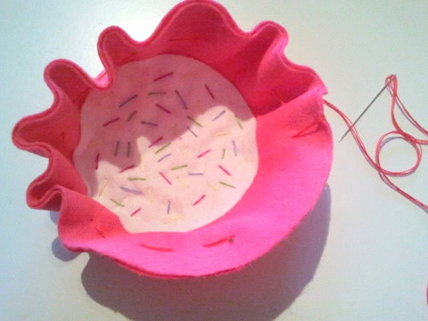 ✔ Filz in weiß und pink (ihr könnt aber auch eine andere Farbe für das „Förmchen“ verwenden)