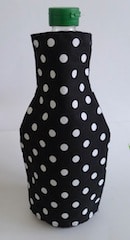 +++Stoff in passende Flaschenform schneiden (x2), rechts aufeinandernähen, oben und unten umnähen, umdrehen – je nach Laune z.B. als Geschenkidee mit Neonband umwickeln – fertig ist das Flaschenkleid!+++