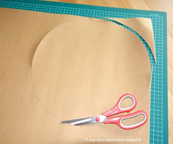 Die Tortenplatte verwendet ihr als Schablone und zeichnet mit einem Bleistift einen großen Kreis auf das vegane Leder (SnapPap).