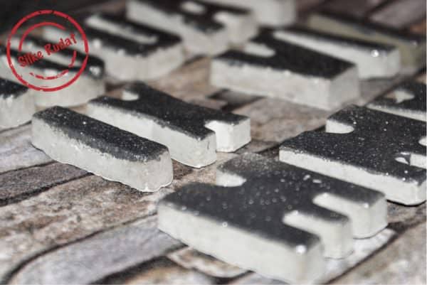 Mit Hochzeitsdatum und Namen des Brautpaares versehene Tafeln in verschiedenen Ausführungen.