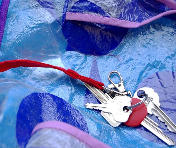 Ein absolutes Muss – aus den Schrägbandresten ein Band mit Haken woran der Schlüssel befestigt wird, Tasche auf, am Band ziehen und tada da ist der Schlüssel, kein lästigen Suchen mehr.