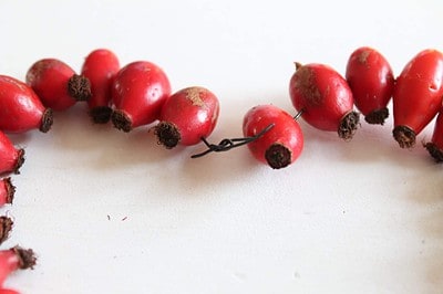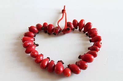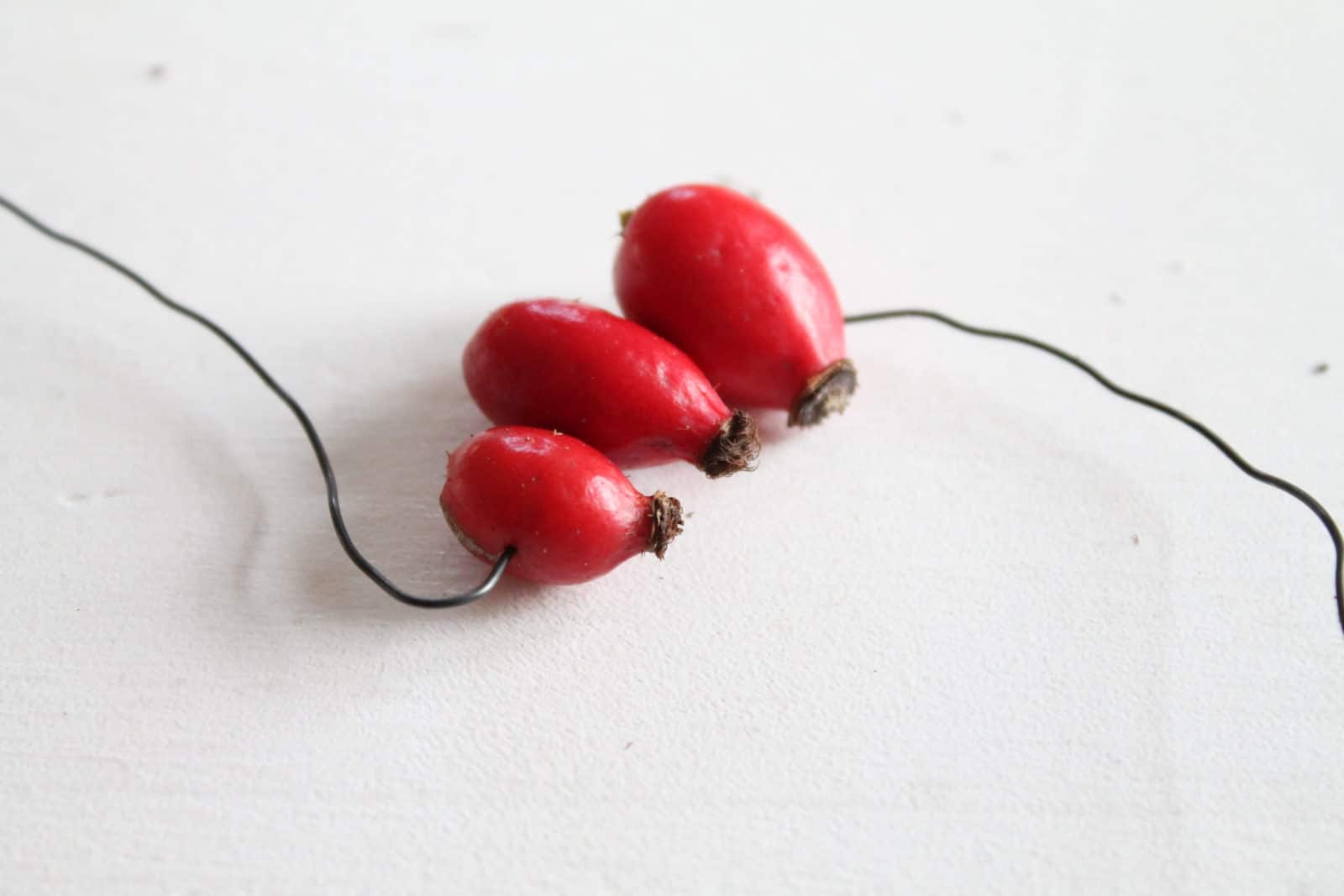 Aus einer Handvoll Hagebutten lassen sich schöne Anhänger für die Wohnung, ein Geschenk usw. gestalten. Sie sind wunderbar schlicht und allein durch die rote Farbe ein toller Hingucker!