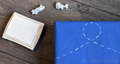 Für die zwei Flugzeugstempel habe ich meine Bilder von einer Flugshow angeschaut und passende ausgesucht. Ihr könnt aber auch eine andere Flugzeugform verwenden. Zeichnet die Bilder vereinfacht auf Papier (in einer für das Geschenk passenden Größe) und übertragt diese auf Stempelgummi, dann Stempel schnitzen. Ein kleiner Stempelgummirest wird dann in Strichform geschnitzt.